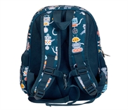 Denne dejlige rygsæk fra A little lovely company, med isoleret forrum, har masser af plads og sikrer, at snacks og drikkevarer forbliver kolde eller varme. Rygsækken har et regulertbart brystspænde foran, samt polstrede skulderstropper, så tasken sidder stabilt. Vejer minimalt, så den ikke føles tung. Det store rum, er stort nok til skolebøger og legetøj, og har et ekstra indvendigt rum til f.eks hæfter eller lign. De to siderum, er i perfekt størrelse til at rumme en drikkedunk. Det robuste bagpanel med fyld og åndbart materiale giver ekstra komfort. Køleelement er ikke inkluderet. Litermål: 16 L. Vægt: 360 gram.