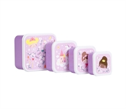 Opbevar din madpakke eller yndlingssnacks i dette smarte snackbokssæt. Frugt, grøntsager, snack, rugbrødsmadder, sandwich eller salater kan let passe ind i disse bokse. Dette dejlige frokost- og snackbokssæt inkluderer fire forskellige størrelser som gør det let at adskille de enkelte madvarer. Fantastisk til skolefrokoster og snacks på farten.