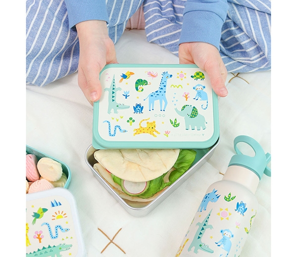 Rustfri stål madkasse med PP låg Jungle