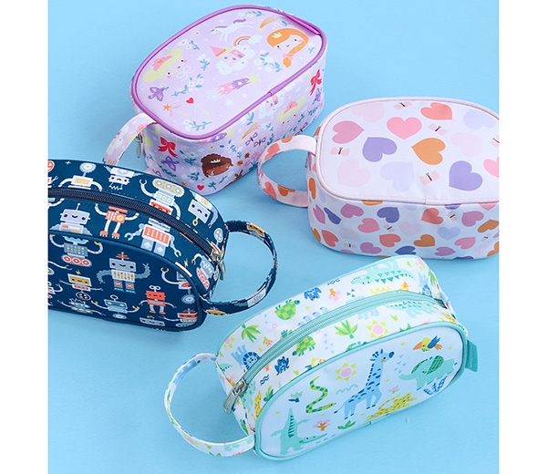 Little Lovely toilettasken giver masser af plads til en flaske shampoo, børste, tandpasta og ekstra toiletartikler. Håndtaget gør det let for børn at bære og kan bruges til ophængning. Den passer perfekt sammen med vores rejsetaske- og rygsækkollektioner.